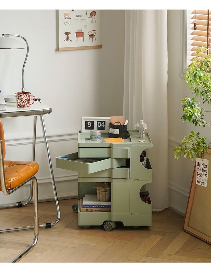 Boby trolley нь уран бүтээлч, дизайнер, гэрийн оффис, студи, эсвэл орон сууцанд хэрэглэхэд зориулсан ухаалаг хадгалах шүүгээ юм. Эргэдэг шургуулгатай, давхаргатай бүтэцтэй тул хэрэгцээт зүйлсийг эмх цэгцтэй хадгалах боломжийг олгоно.