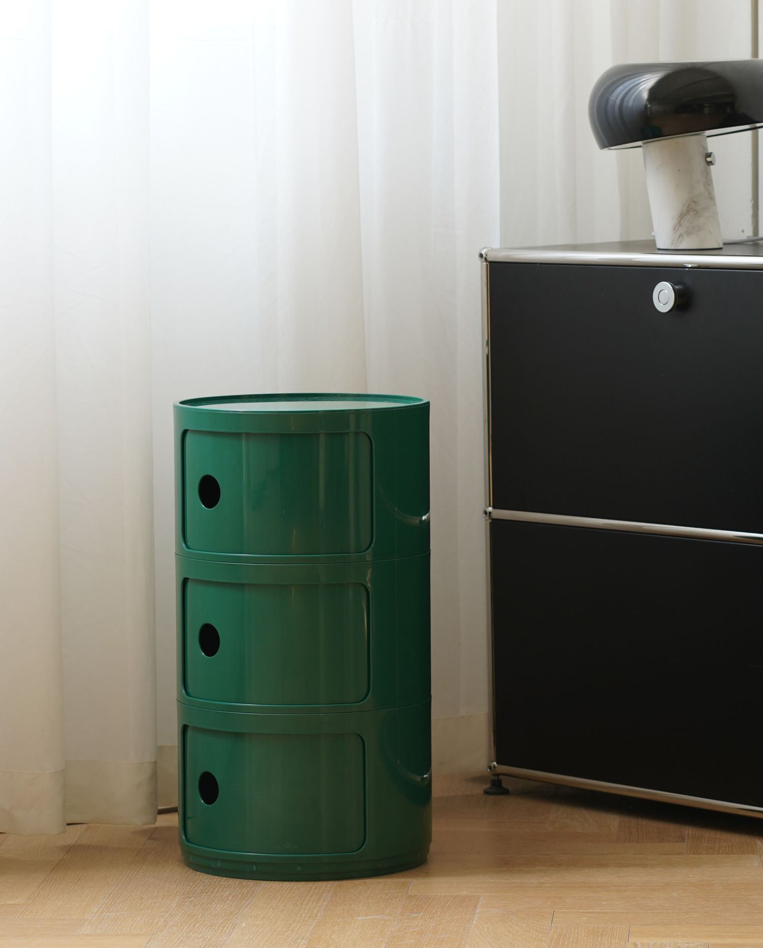 Энэхүү хадгалах шүүгээ нь зөөлөн дугуй болон дөрвөлжин хэлбэртэй минимал дизайнтай, ABS материалаар хийгдсэн, хөнгөн мөртлөө бат бөх бүтэцтэй.